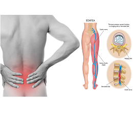 Sciatica, also known as lumbar radiculopathy, is numbness, tingling, weakness, or pain anywhere along the sciatic nerve caused by compression of the nerve. The sciatic nerve runs from the lower back through the hips and buttocks and all the way down the backs of the legs to the feet.